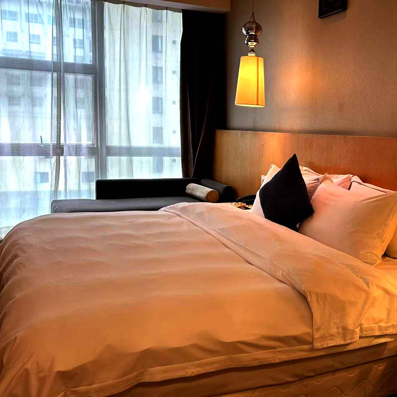 便利设施 多种规格电源插座,单一规格电源插座110v电压插座,220V电压插座,遮光窗帘,手动窗帘,房内保险箱,书桌,备用床具,床具:毯子或被子,电子 秤,针线包,雨伞,衣柜/衣橱,空调免费,开夜床,客房WiFi免费,洗衣用品,地毯,熨衣设备,衣架,茶几,休闲椅,餐桌,一次性拖鞋