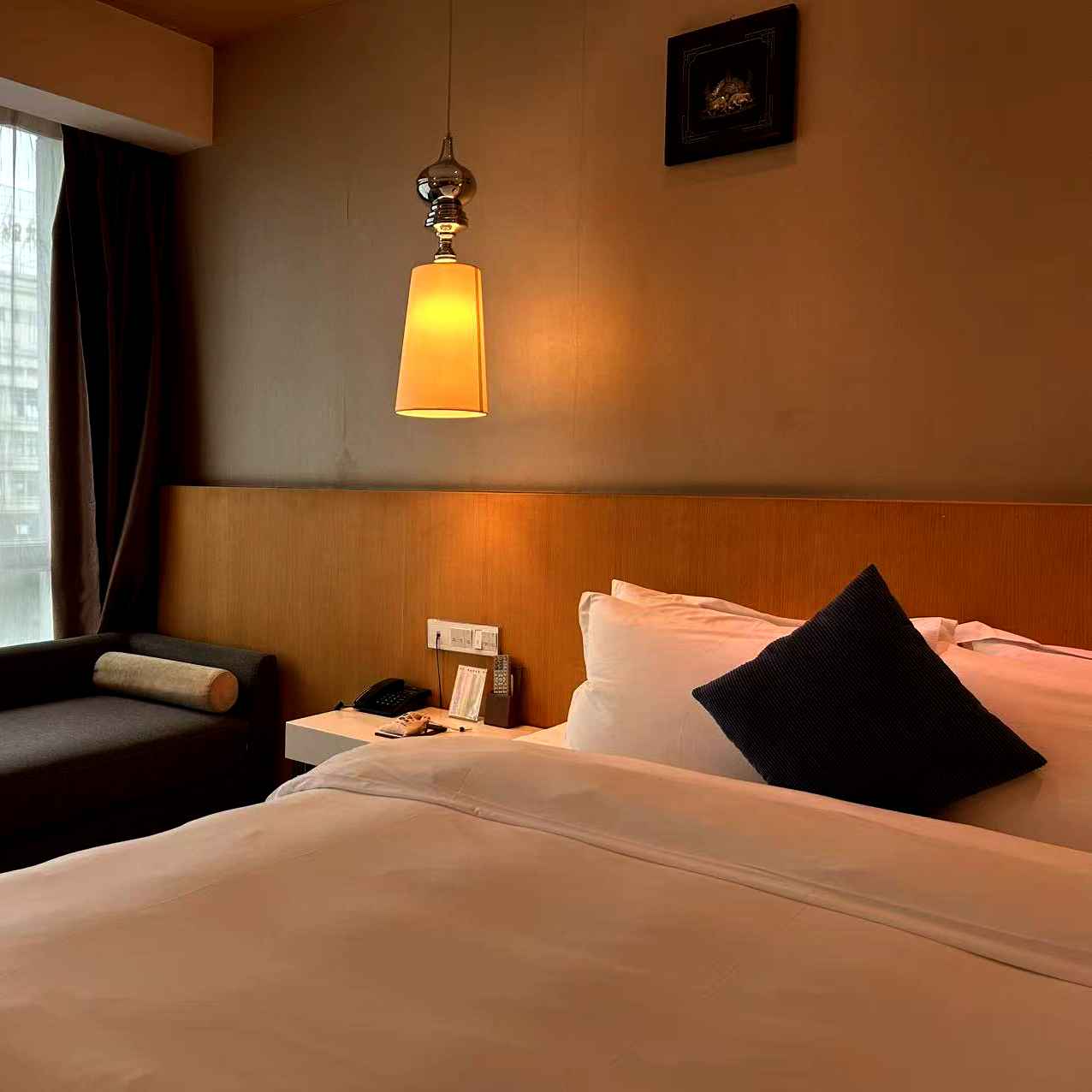 便利设施 多种规格电源插座,220v电压插座,遮光窗帘,手动窗帘,座椅,办公用品(笔、便签),床具;鸭绒被,电子秤,针线包。空调免费,客房WiFi免费,一次性拖鞋
