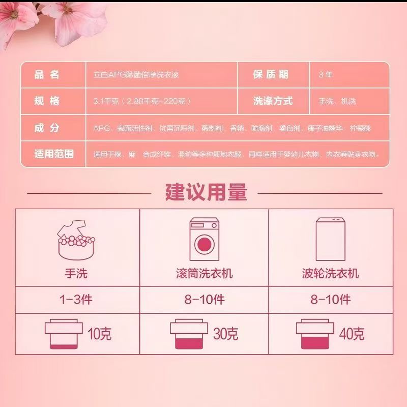 立白APG除菌倍净洗衣液 2.88KG+200个*4